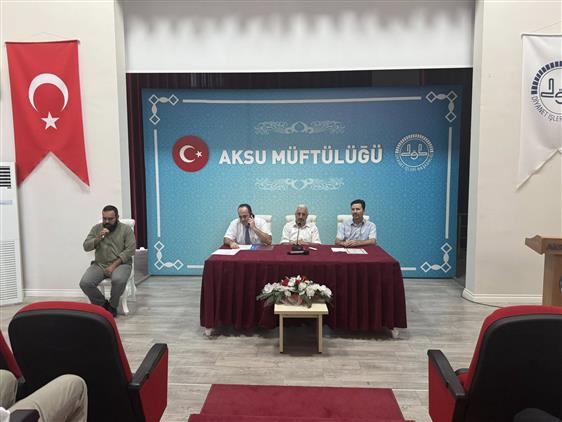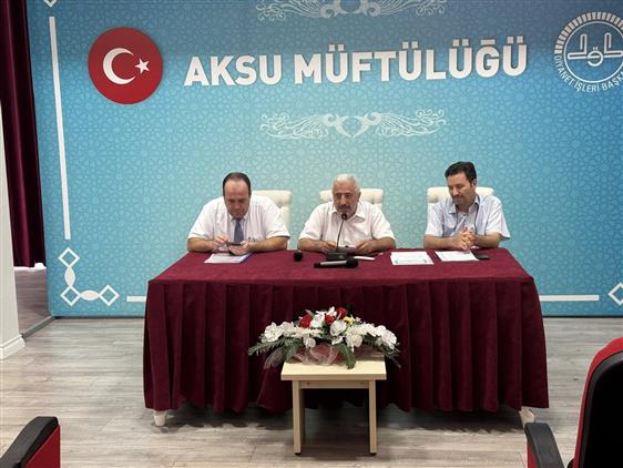 Cami görevlilerinin dilek ve temennilerini dinleyen İlçe Müftüsü Aksu İlçesine hizmet etmek için hep birlikte çalışacaklarını söyledi. Emekli olan VHKİ Personel Turgut BAYAR ile helalleşerek vedalaştı.