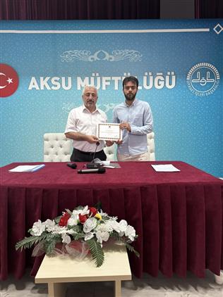 Ramazan ayında Gönül Camiinde hatimle teravih namazı kıldıran Hz. Abbas Kur’an Kursu Öğreticisi Ethem SEZGİN’e Diyanet İşleri Başkanlığı tarafından gönderilen belge takdim edildi.