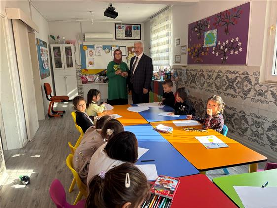 İlçe Müftüsü Yusuf Ulusoy, Aile ve Dini Rehberlik Vaizesi Senanur Demirbaş ile birlikte Kur'an Kurslarımızı ziyaret ederek Kur'an Kursu Öğreticilerimizin öğretmenler gününü kutlayarak çiçek takdim etti.