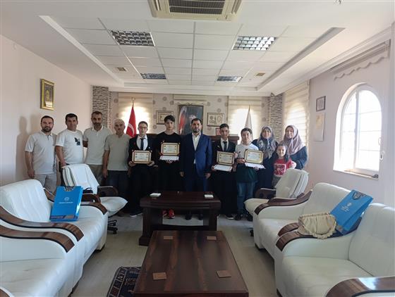 İlcemiz Hz. Ömer Hafızlık Yatılı Kur'an kursunda eğitimlerini tamamlayarak Diyanet işleri Başkanlığının Hafızlık sınavında başarılı olup Hafızlık Belgesi almaya hak kazanan yedi öğrenciye belgeleri takdim edildi.