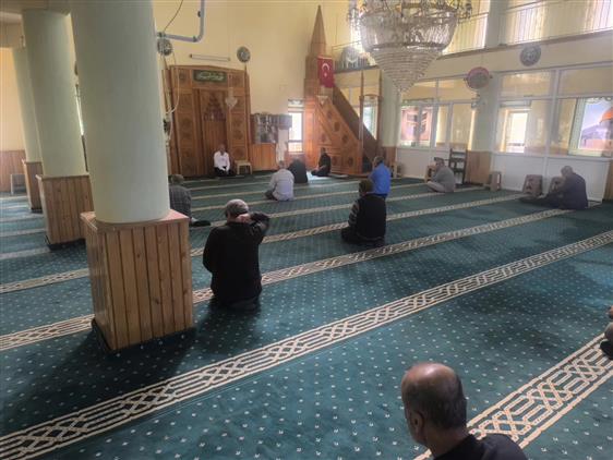 Çalışmalar hakkında İmam Hatip Ali Coşkun'dan bilgi alan Müftü Topaloğlu, öğle namazını burada eda ederek cami cemaatine vaaz irşad etti.