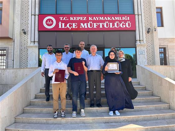Kepez İlçe Müftülüğüne bağlı Hafızlık Kur’an Kurslarında eğitim gören ve 2025 Yılı III. Dönem Hafızlık Tespit Sınavını başarıyla geçen öğrenciler, icazetnamelerini İlçe Müftüsü Mehmet Ersöz’den teslim aldı.