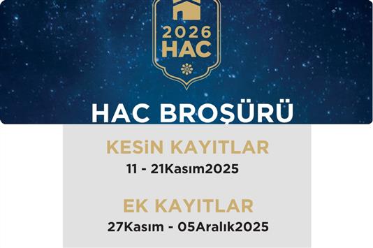 Elinizdeki bu broşürde 2026 hac organizasyonumuzla alakalı bilgileri ve hizmetleri bulacaksınız.