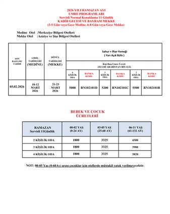 Diyanet İşleri Başkanlığımızın 2026 Yılı Umre Organizasyonu çerçevesinde; Ramazan ayı Umre turlarına kayıtlarımız başladı.