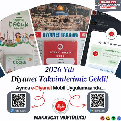 Not: Diyanet Takvimlerimizi tüm camilerimizden ve müftülüğümüzden temin edebilirsiniz.
