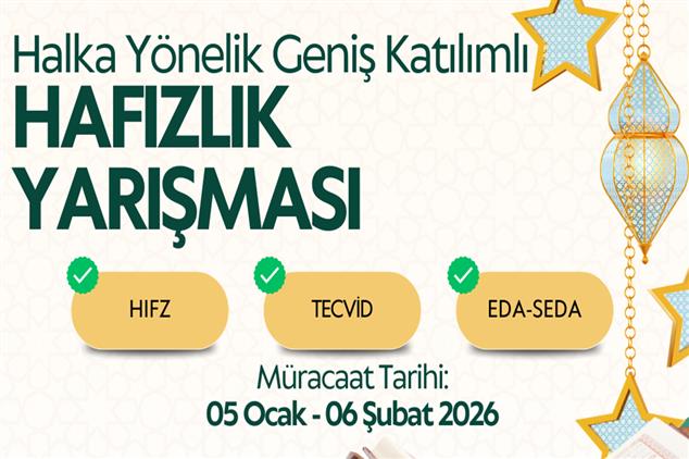 Bu vesileyle, daha önce hafızlık yapmış tüm vatandaşlarımızı, hafızlıklarını yeniden güçlendirmek ve bu anlamlı organizasyona katılmak üzere 2026 Yılı Halka Yönelik Geniş Katılımlı Hafızlık Yarışması’na davet ediyoruz.