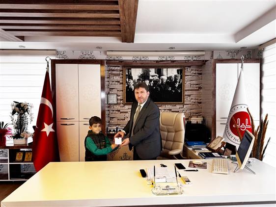 İlçe Müftümüz Abdullah Eroğlu, bu anlamlı davranışından dolayı Adil Umut’u tebrik ederek kendisine yardım makbuzunu takdim etti. Ayrıca “akıllı saat” ve “Gençlerle Baş Başa” kitabını hediye etti.