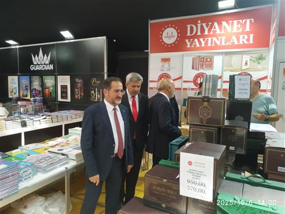 Antalya İl Müftü Vekili Talat Özmet, İl Müftü Yardımcısı Ramazan Özgün Türkmen ,Muratpaşa İlçe Müftüsü İshak Göksel, Kepez İlçe Müftüsü Mehmet Ersöz, Konyaaltı İlçe Müftüsü Musa İmamoğlu ve Döşemealtı İlçe Müftüsü Ramazan Avcı ile birlikte Diyanet İşleri Başkanlığı Yayınları’nın Antalya Kitap Fuarı’ndaki standını ziyaret etti.