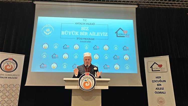 Antalya Hulusi Şahin ve İl Müftüsü Aydın Yığman, Aile ve Sosyal Hizmetler İl Müdürlüğü tarafından koruyucu ailelere yönelik düzenlenen iftar programına katıldı.
